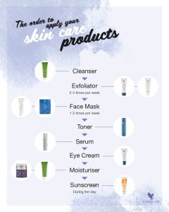Here is Forever’s recommended skincare routine in the recommended order for product application.
