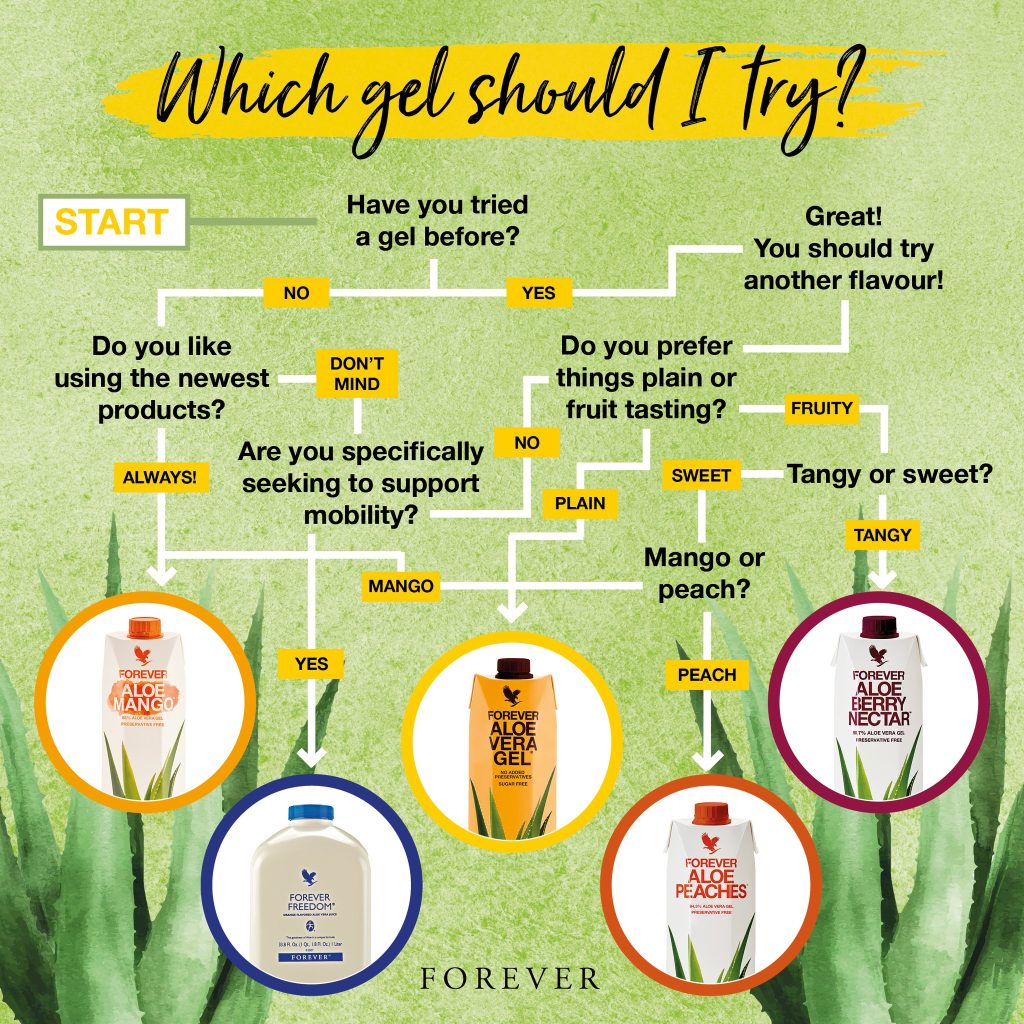 A. Try one of the Aloe Vera Gel Drinks I hope the diagram below helps you decide.